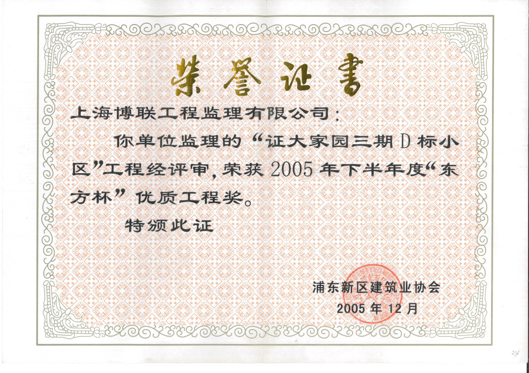 2005年东方杯(证大家园三期D标小区)优质工程奖