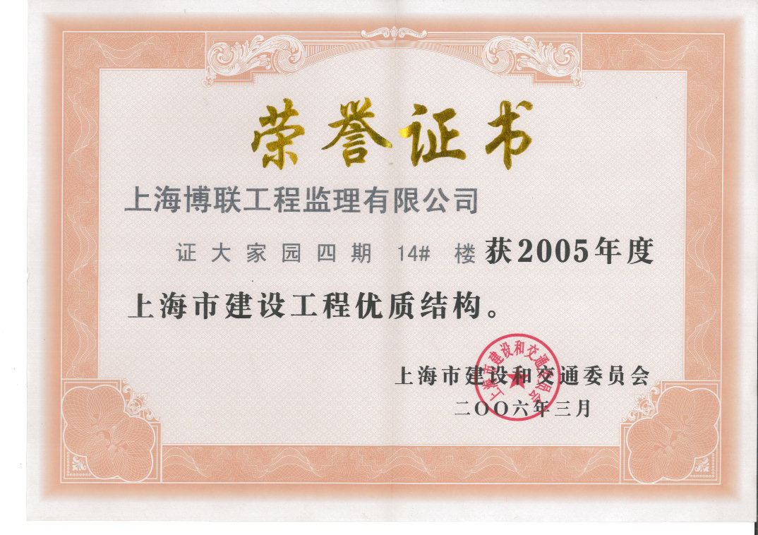 2005年东方杯(证大家园肆期14#楼)优质工程奖